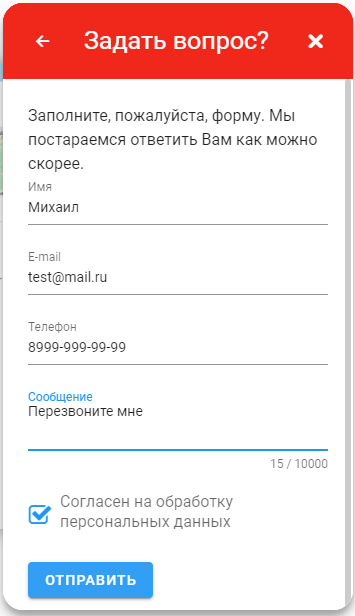 Если операторы не находятся в сети - клиенту становится доступна форма обратной связи. Посетитель может заполнить контактные данные (имя, email, телефон) и задать свой вопрос. Письмо с заданным вопросом придет на почту, которую предварительно указал владелец сайта. Также посетитель может заказать "обратный звонок".