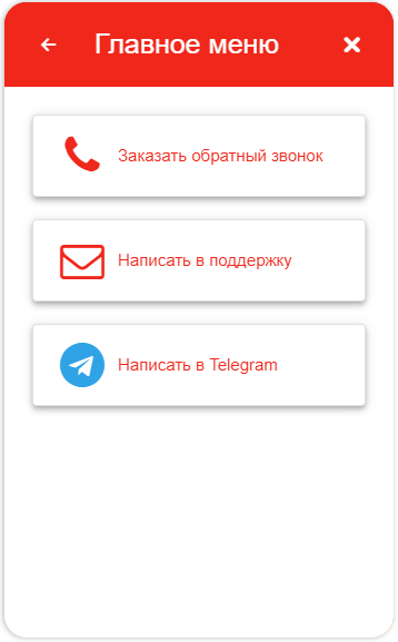 Также, если владелец сайта предварительно настроил интеграцию с Telegram и подключил бота ( подробнее про интеграцию с телеграм ), посетитель сайта сможет перевести переписку в данный мессенджер. Аналогично возможно подключение поля "обратного звонка".