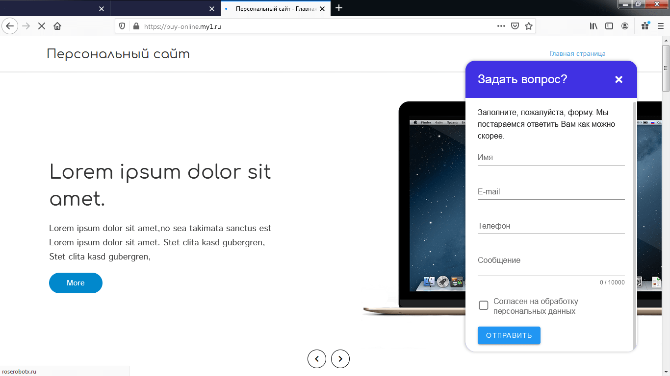 Отлично. Откройте ваш сайт и обновите страницу. Чат подключился и отображается офлайн-форма.