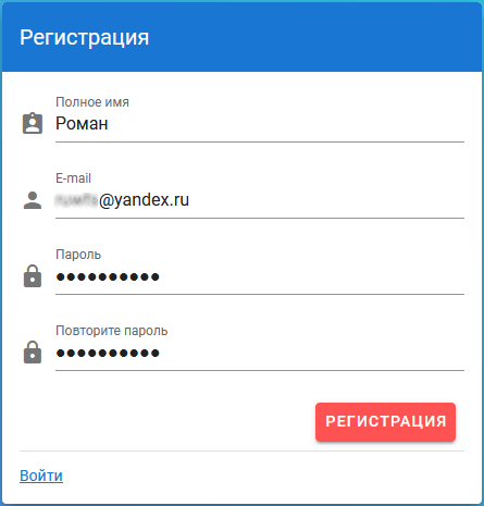 Заполните форму, указав имя, ваш действующий e-mail и пароль для ЛК.