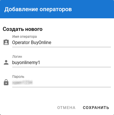 Введите логин и пароль оператора, которого вы создали ранее.