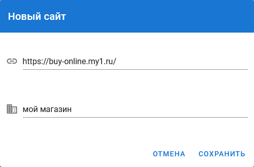 Добавление сайта