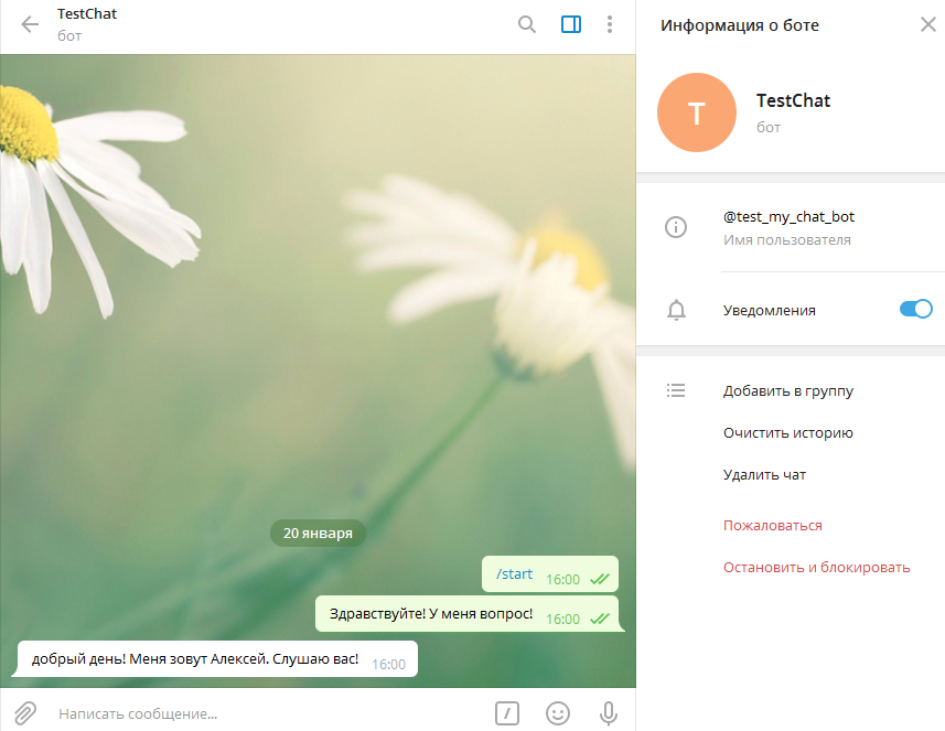 Теперь можно отправлять сообщения в Telegram через вашего бота.