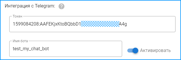 Далее переходим в личный кабинет. Выбираем сайт, для которого хотим подключить бота. Переходим в Настройки-Интеграция-Интеграция с Telegram. Вводим Имя, API токен бота и нажимаем Активировать.